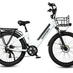 Shimano 7‑gearssystemet gør det nemt at tilpasse pedalindsatsen efter terræn og fart. Et intuitivt LCD-display viser hastighed, batteriniveau og distance, så du altid har fuld kontrol over turen. Den robuste frontkurv og bagagebærer gør det muligt at transportere dagligvarer, tasker eller udstyr, hvilket øger cyklens anvendelighed til hverdagsbrug.